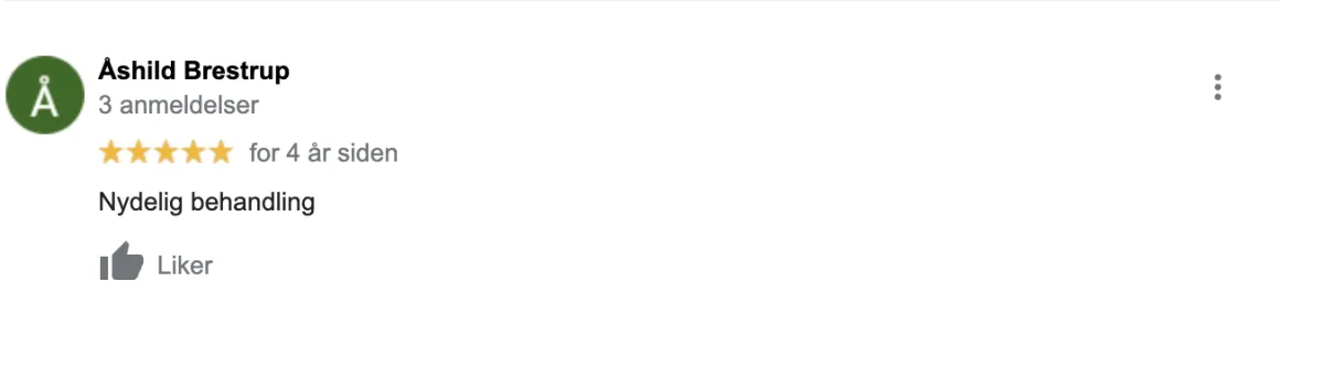Kristin tilpasser alle behandlinger, slik at det blir en god opplevelse for deg. Hun er grundig og seriøs og gjør alt hun kan for at du skal bli fornøyd.